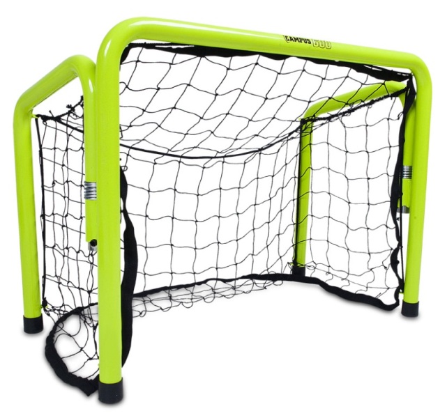 Skládací florbalová branka se sítí s rozměrem 40 x 60 cm.