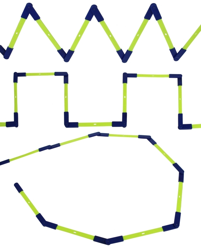 Unikátním vylepšením skládacích agility lamel Merco Agility Slats je madlo, které je možné protáhnout středem příček a využít jej jako nosič tohoto agility žebříku.